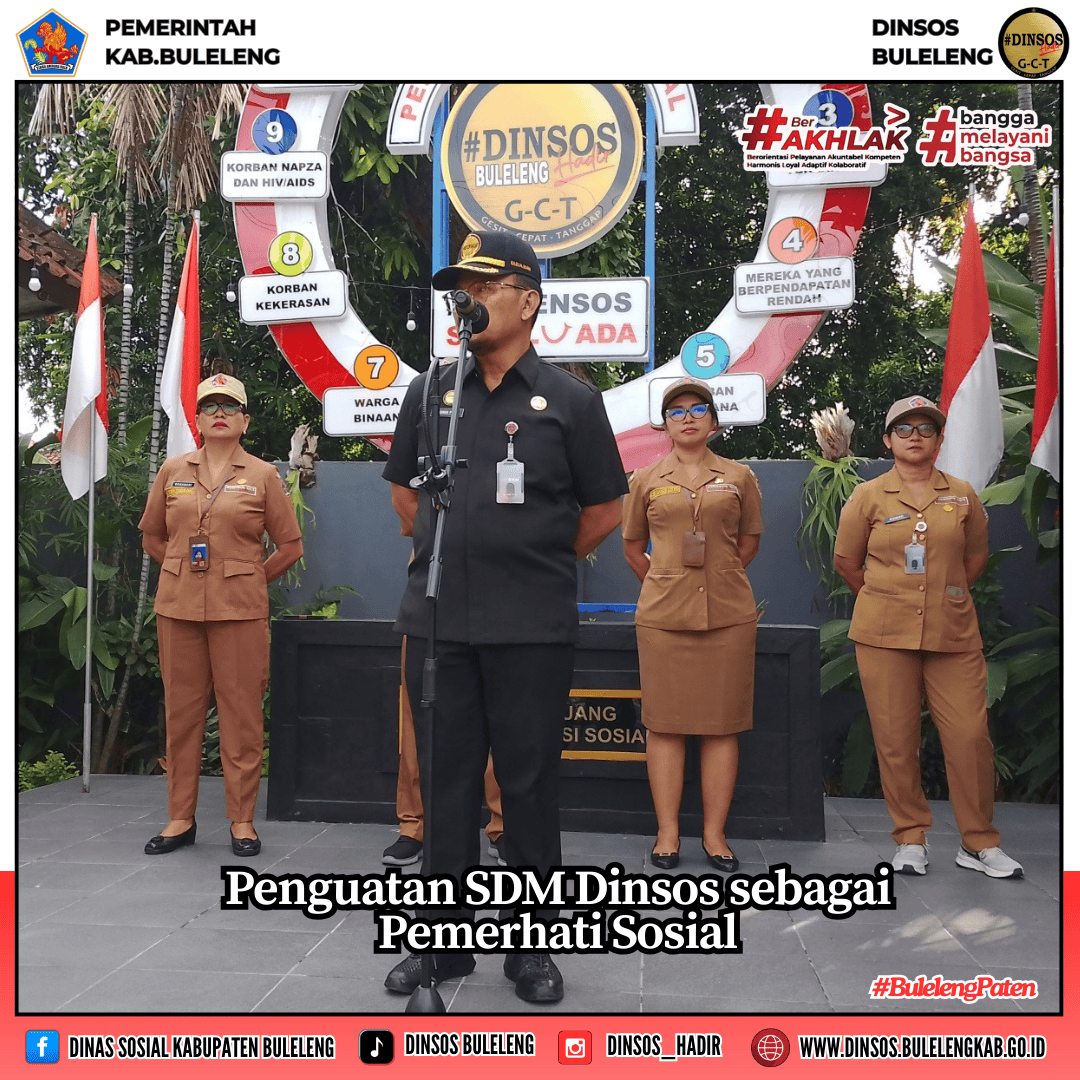Pada kesempatan apel pagi ini, Kepala Dinas Sosial Kabupaten Buleleng I Putu Kariaman Putra,S.Sos,MM menekankan pentingnya peran kita sebagai aparatur Dinas Sosial, Kita tidak hanya menjadi pelaksana administrasi, tetapi juga dituntut menjadi pemerhati sosial yang hadir di tengah masyarakat.
