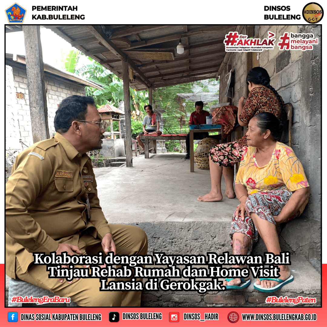 Sebagai bentuk kepedulian terhadap kesejahteraan masyarakat kurang beruntung, Kepala Dinas Sosial Kabupaten Buleleng, I Putu Kariaman Putra, S.Sos., M.M., berkolaborasi bersama Yayasan Relawan Bali melaksanakan kegiatan peninjauan rehabilitasi rumah layak huni serta home visit lansia sakit kronis di wilayah Kecamatan Gerokgak.