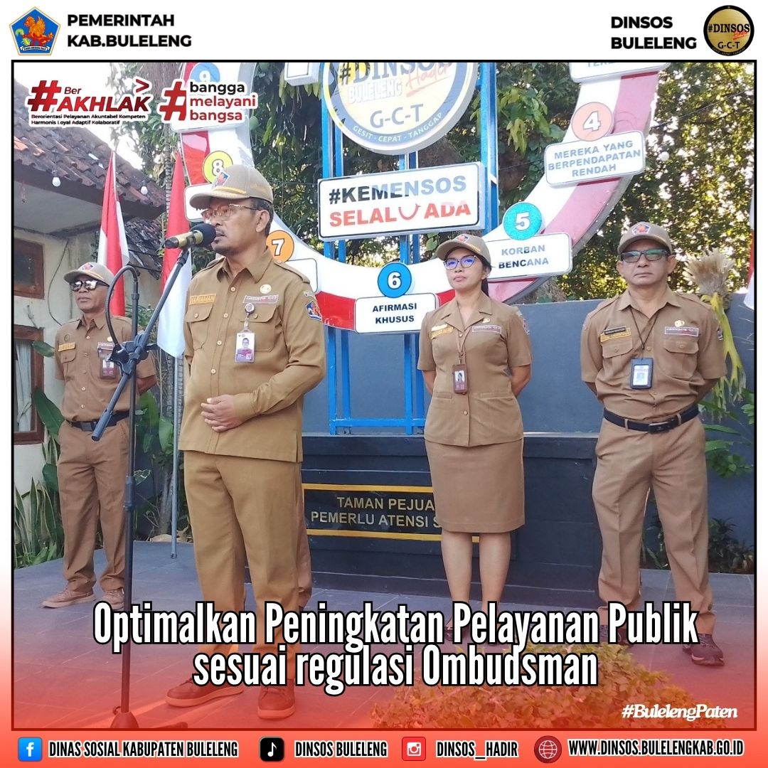 Dinas Sosial Kabupaten Buleleng terus berupaya meningkatkan kualitas pelayanan publik dengan mengedepankan prinsip transparansi, akuntabilitas, dan profesionalitas sesuai ketentuan peraturan yang berlaku. Upaya ini dilakukan sebagai bentuk komitmen Pemerintah Daerah dalam memberikan pelayanan yang cepat, tepat, dan berpihak kepada masyarakat.