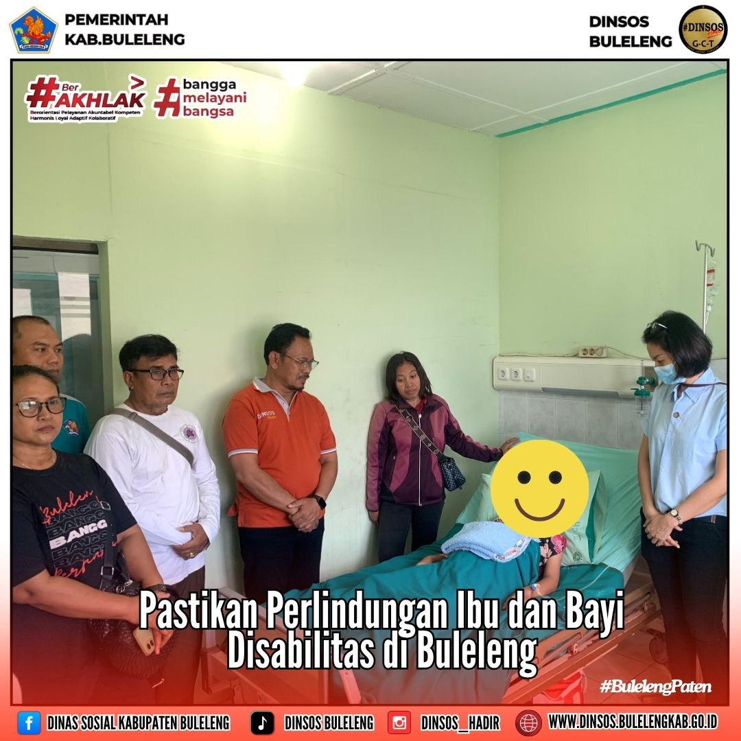Kepala Dinas Sosial Kabupaten Buleleng, I Putu Kariaman Putra, S.Sos., M.M., didampingi Plt. Kepala Bidang Pelayanan dan Rehabilitasi Sosial (Yanrehsos) Ni Luh Riawati, S.Sos., bersama Lurah Kendran serta Kelian Adat Kendran, secara langsung menjenguk penyandang disabilitas sensorik rungu wicara berinisial KAA (33) di RSUD Buleleng, pasca melahirkan bayi laki-laki beberapa hari lalu.