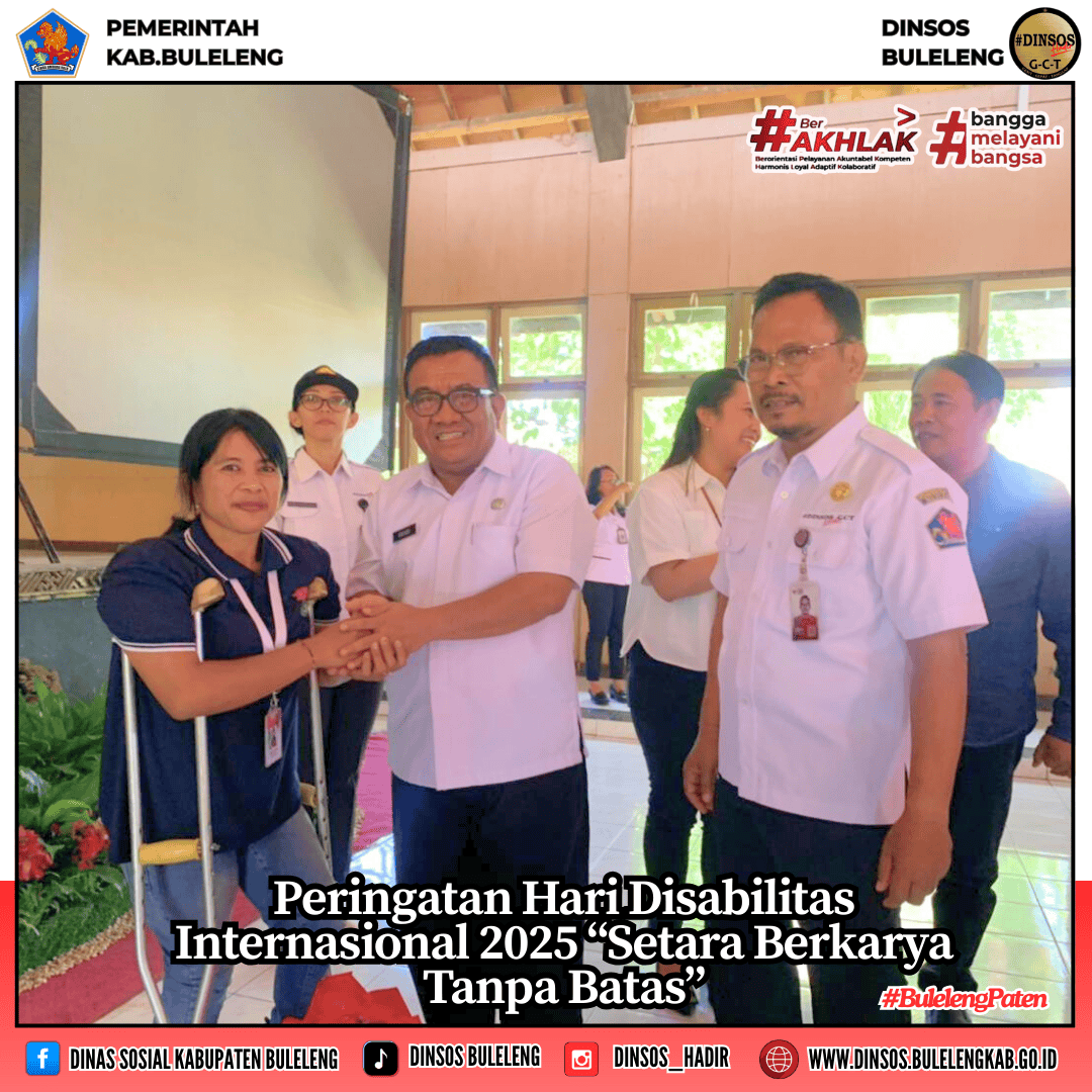 Pemerintah Kabupaten Buleleng melalui Dinas Sosial kembali memperingati Hari Disabilitas Internasional (HDI) dengan tema “Setara Berkarya Tanpa Batas”. Perayaan tahun ini digelar di Gedung Wanita Laksmigraha, Singaraja, sebagai wujud penghormatan, pemajuan, dan peningkatan kesejahteraan penyandang disabilitas di berbagai bidang kehidupan.