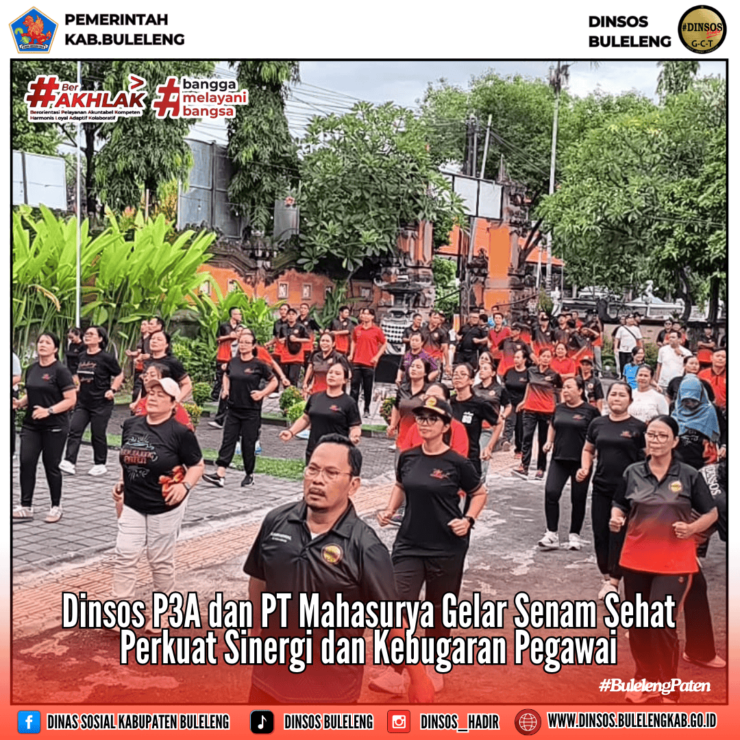 Dinas Sosial Pemberdayaan Perempuan dan Perlindungan Anak (Dinsos P3A) menggelar kegiatan Senam Sehat Bersama sebagai wujud komitmen dalam menjaga kesehatan dan kebugaran para pegawai. Kegiatan ini terlaksana melalui kolaborasi antara Dinsos P3A dan PT Mahasurya, yang turut mendukung terselenggaranya acara dengan menghadirkan salah satu instruktur senam terbaiknya.