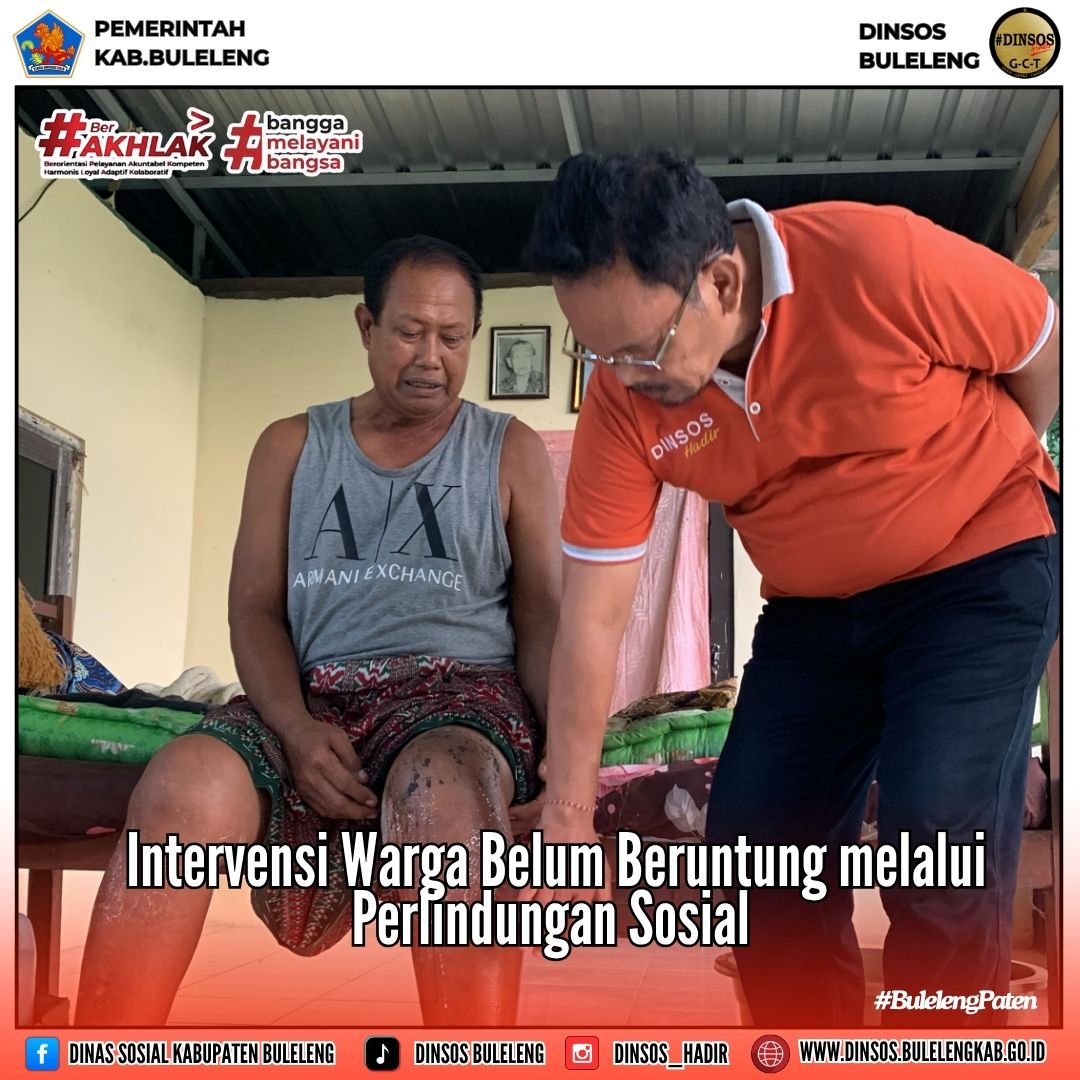 Dinas Sosial Kabupaten Buleleng terus menunjukkan kepeduliannya terhadap masyarakat kurang beruntung. Kadis Sosial Buleleng, I Putu Kariaman Putra turun langsung ke lapangan untuk melakukan intervensi sekaligus menyalurkan bantuan sosial berupa tongkat ketiak, pakaian layak pakai, serta paket sembako berisi bahan kebutuhan pokok kepada warga atas nama Ketut Mastra beralamat di Desa Bubunan Kecamatan Seririt